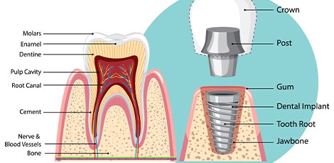 A dental implant consists of a biocompatible titanium post that is surgically inserted into the jawbone to act as an artificial tooth root. Over time, the implant naturally fuses with the bone through a process called osseointegration, creating a strong foundation for the replacement tooth. Once healing is complete, a custom-made dental crown is attached, carefully shaped and color-matched to blend seamlessly with your natural teeth.